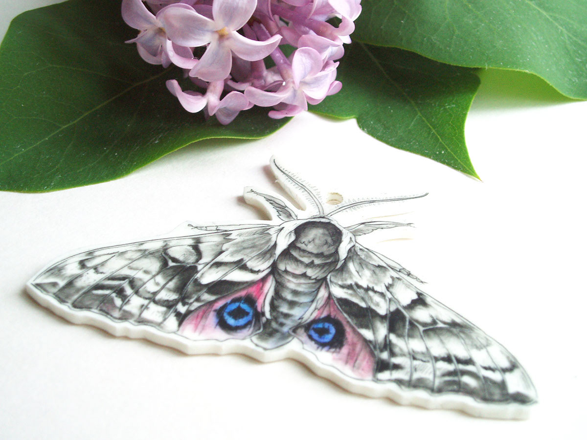Jewellery pieces made with pencil drawings on shrink plastic